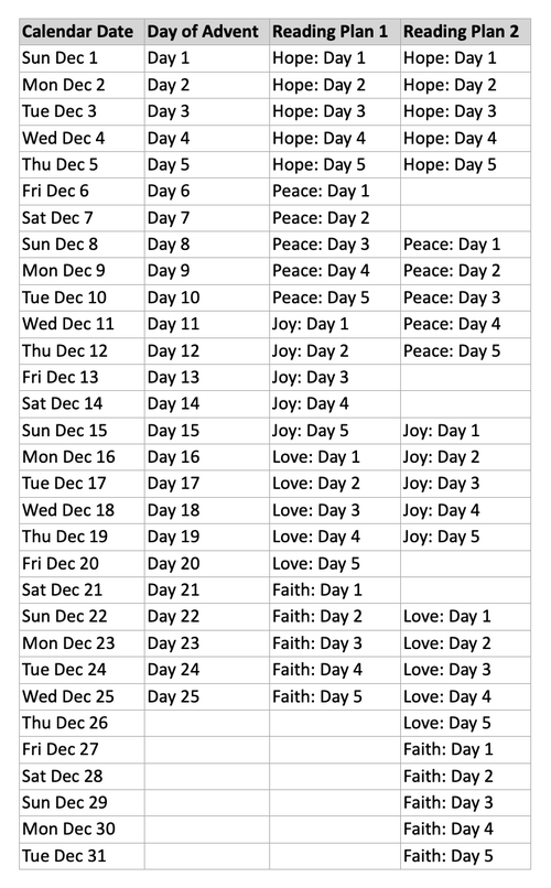 There are two easy-to-follow reading plans laid out below or on the third page of the devotional PDF.